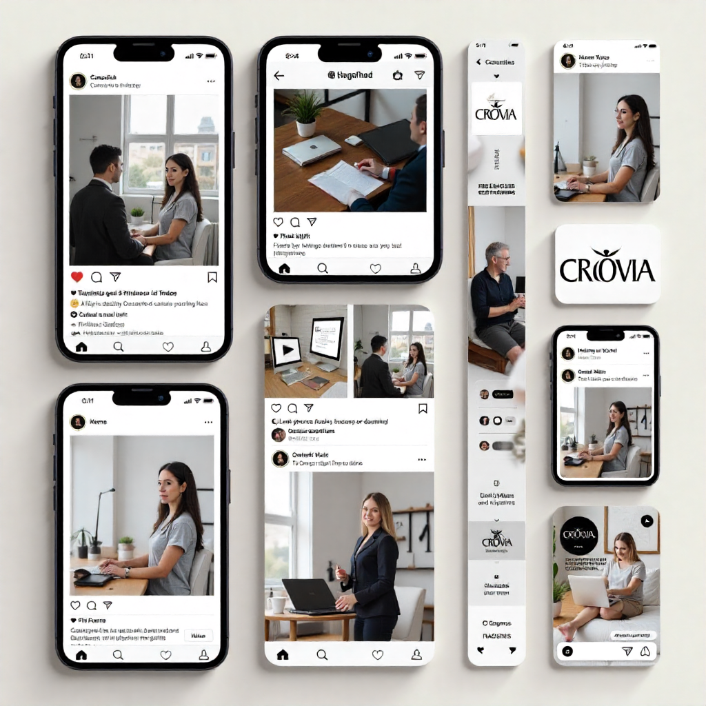 Vocea socială a brandului tău este cea care invită lumea în povestea ta. Creovia Social Media Studio își creează prezența digitală cu un design concis și o poveste strategică. Indiferent dacă te lansezi sau te extinzi, construim conținut care implică, conectează și îți dezvoltă publicul.